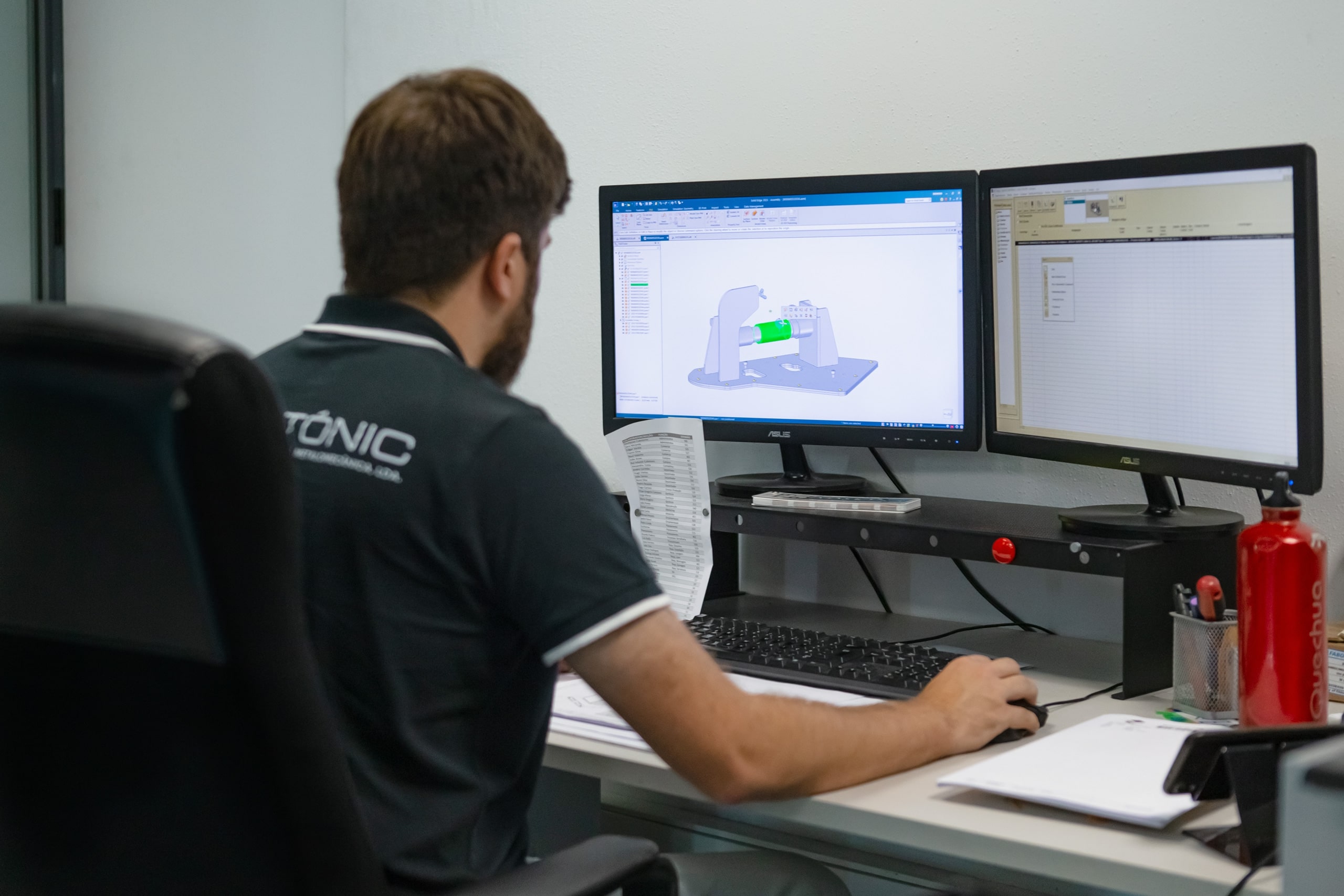 A Cubotónic otimiza a produção através do projeto mecânico 3D, reduzindo testes físicos e garantindo maior precisão e qualidade. Utilizamos o software Solid Edge da Siemens para modelar peças e conjuntos, ajustando-os às necessidades dos clientes.